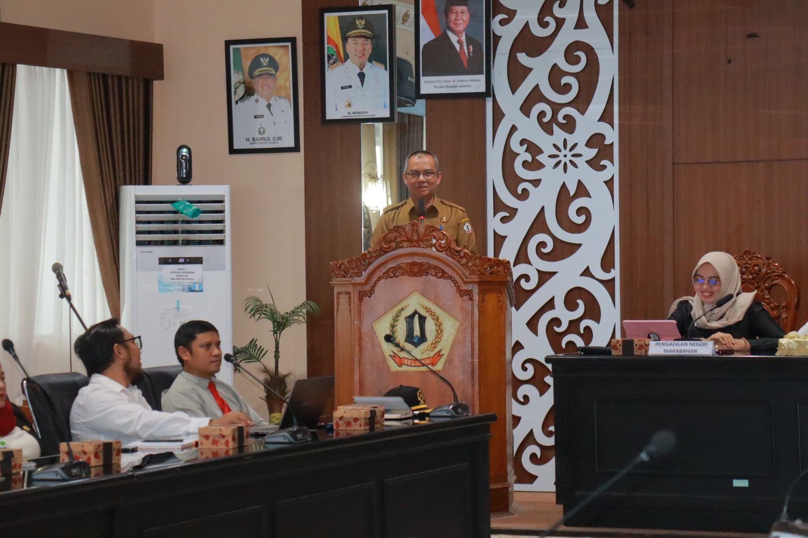 TRANSPLUS.ID. Marabahan – Rapat Evaluasi MoU Program Pelayanan Terpadu Penyelesaian Masalah Sertifikat Tanah Eks Transmigrasi (PADU SERASI) di Aula Bahalap, Selasa (20/05). Berhadir rapat Sekretaris Daerah mewakili Bupati Barito Kuala, Ketua Pengadilan Negeri Marabahan, Kepala Kantor Pertanahan Barito Kuala, Kepala Badan Pengelolaan Pajak dan Retribusi Daerah, serta Kepala Dinas Pemberdayaan Masyarakat dan Desa.