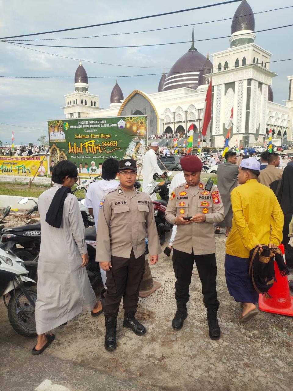 Di berbagai lokasi ibadah, personel kepolisian ditempatkan di titik-titik strategis guna memastikan ibadah berlangsung lancar. Padal Wilayah 4, Iptu Affan Effendi, bersama Bripka Oktabriansyah dan Brigadir M. Kholis J.S., berjaga di setiap titik krusial. Begitu pula di Masjid Raya Darusallam, dengan pengamanan yang dipimpin oleh Ipda Isdi Susila Wibawa dan Ipda Amirullah Sandhi.